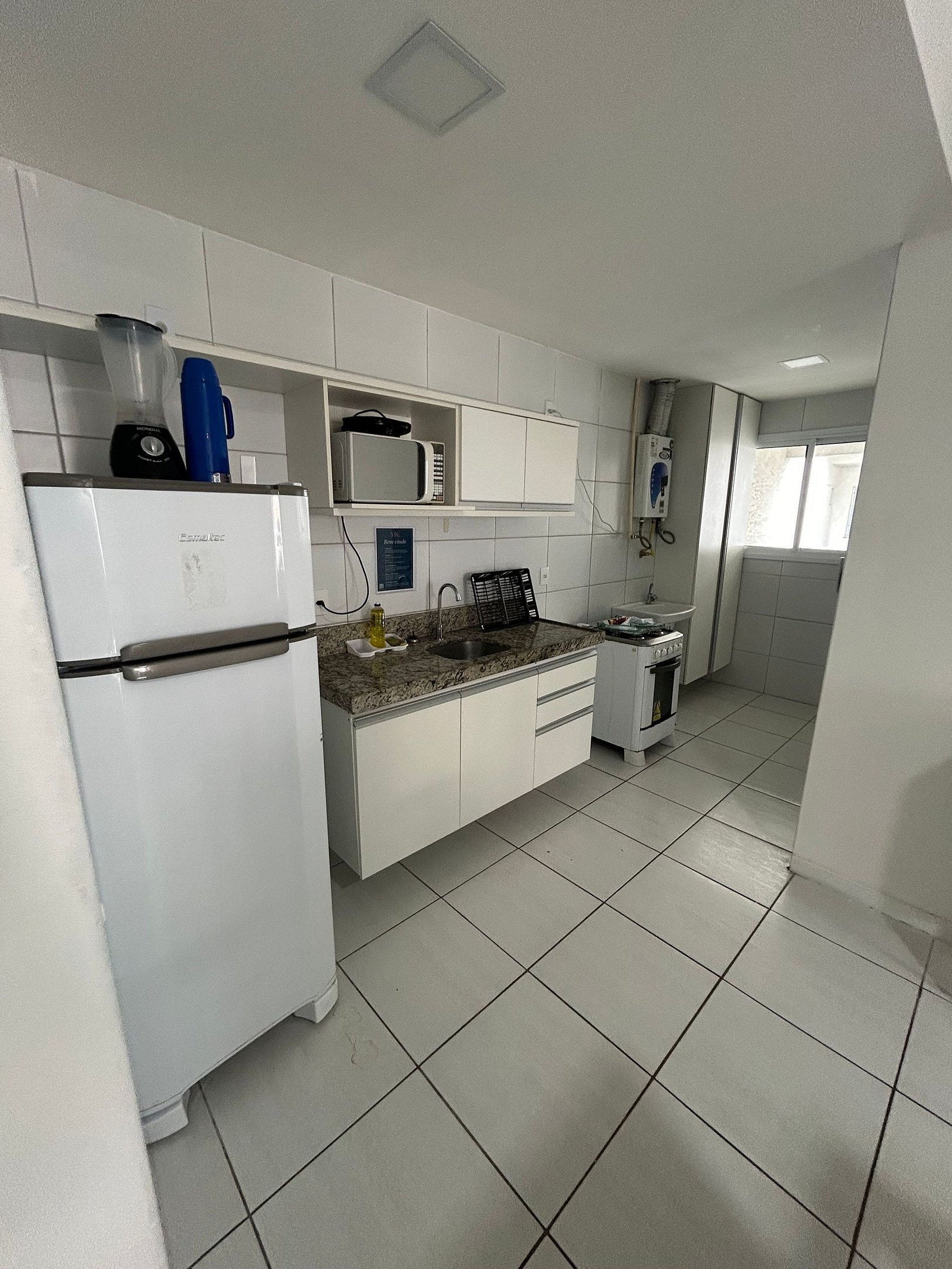 Faz o check in na recepção, vão orientar o número e bloco do apartamento, junto com a senha de acesso. Unidade tem direito a duas vagas de garagem.